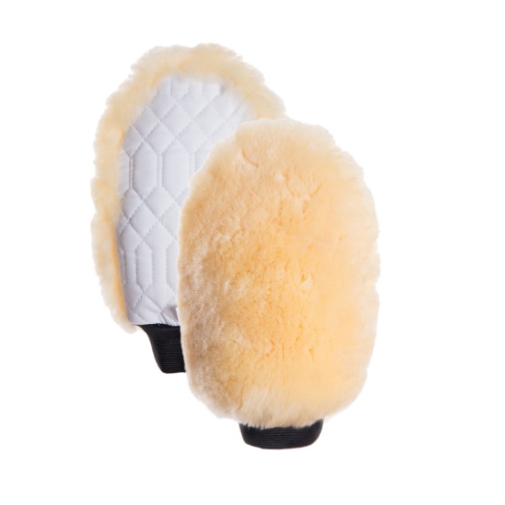 Beautifully made wash or grooming mitt from the same high quality Australian Merino lambskin as the numnahs for that finishing touch when shampooing or grooming.One side made of medical sheepskin and the other side is quilted.